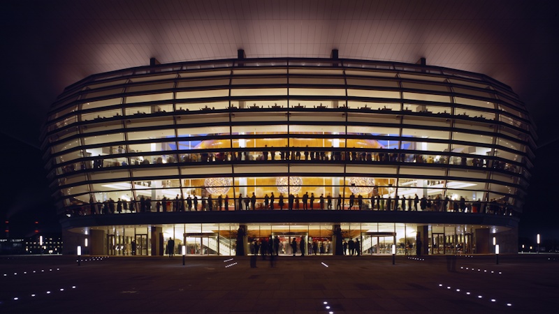Oplev Operaens imponerende foyer, hvor det overvældende lysindfald, Olafur Eliassons verdenskendte lysskulpturer og den unikke udsigt over Københavns Havn og Frederiksstaden tilsammen danner en storslået ramme om den blanke ahornskal, der omfavner Store Scene. Her møder arkitektur og kunst hinanden i en atmosfære af ro, præcision og skønhed.
